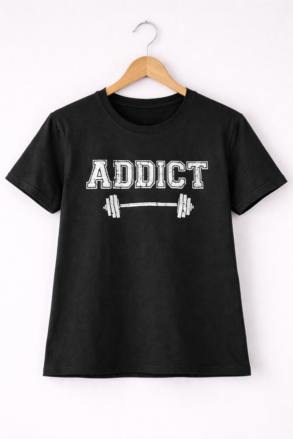 Made from soft and breathable cotton fabric, this T-shirt is designed for comfort during workouts and casual wear. The bold “Addict” text with barbell graphic gives a strong and energetic look, perfect for gym lovers and fitness enthusiasts. Easy to pair with joggers, shorts, or jeans, this T-shirt is ideal for training sessions as well as everyday wear.
