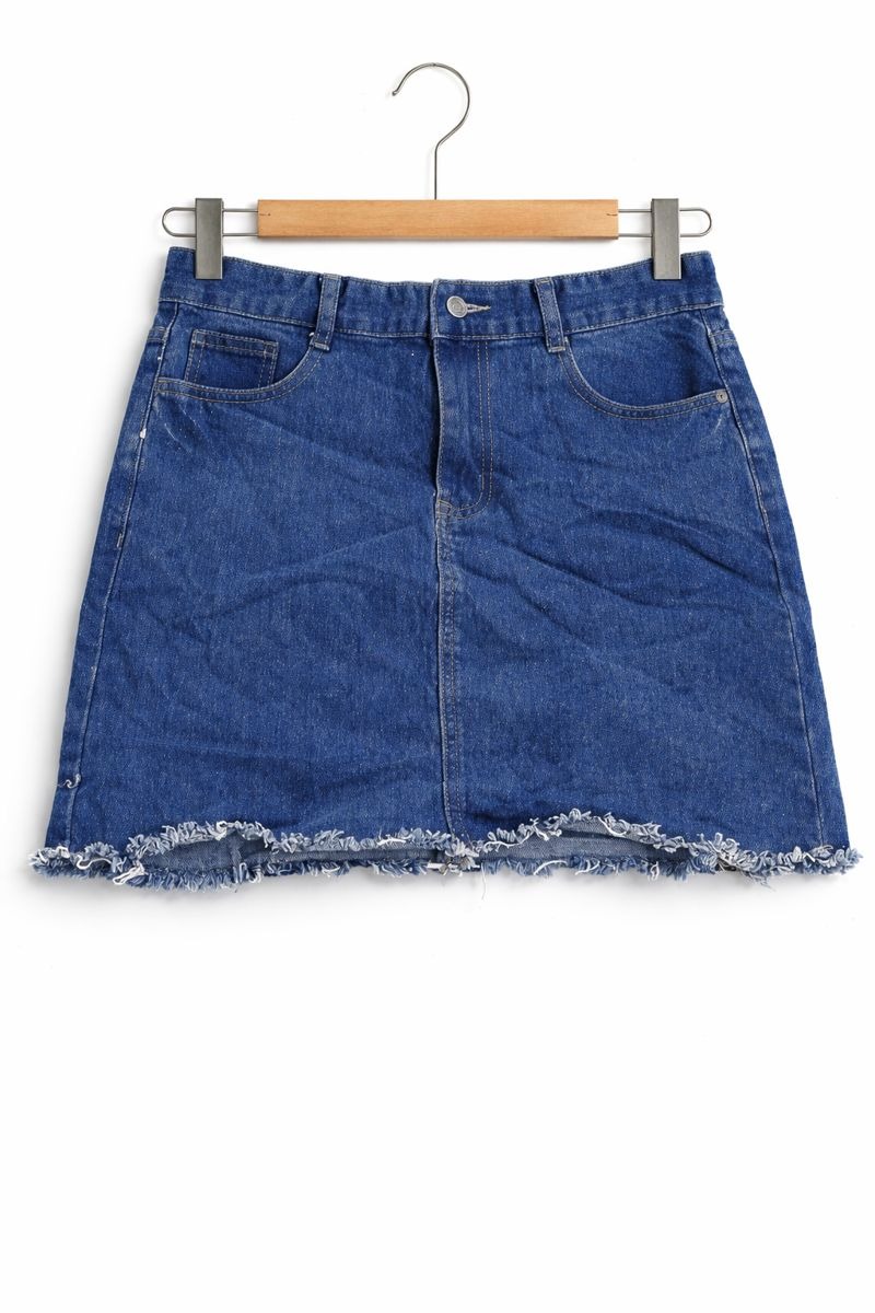 Add a timeless essential to your wardrobe with this Classic Blue Denim Mini Skirt. Crafted from durable denim fabric, it features a comfortable fit with a clean silhouette and a trendy frayed hem. Easy to style for everyday wear, this skirt pairs perfectly with tees, tops, or jackets for a casual yet stylish look. Ideal for daily outings and effortless street style.