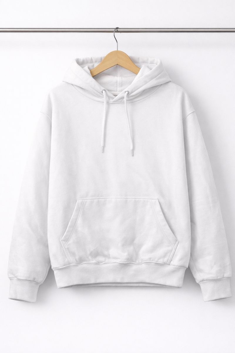 Keep it simple and stylish with this Classic White Solid Hoodie. Made from soft, comfortable fabric, this hoodie is designed for all-day wear and effortless styling. It features a cozy hood with drawstrings, ribbed cuffs and hem, and a front kangaroo pocket for added comfort and functionality. The clean, minimal design makes it perfect for casual outings, daily wear, or layering during cooler days. Easy to pair with jeans, joggers, or shorts for a relaxed, modern look.