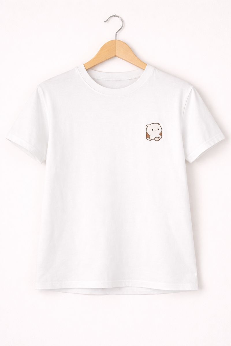 Add a touch of cute minimal style to your wardrobe with this Cute Bear Pocket Graphic Tee. Designed in a clean white color, this t-shirt features a small bear print near the chest pocket area, giving it a subtle yet charming look. Made from soft, breathable fabric, it ensures all-day comfort and easy wear. Perfect for casual outings, daily wear, or relaxed weekends, this tee pairs effortlessly with jeans, shorts, or joggers for a fresh and simple look.