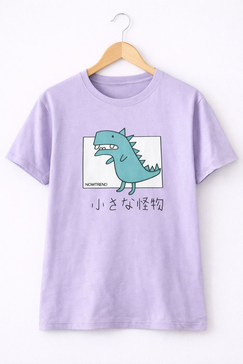 Bring playful vibes to your everyday look with this lavender graphic T-shirt featuring a cute dinosaur print and “Little Monster” text. Designed for a fun, youthful style, this tee is made from soft, breathable fabric that feels comfortable all day long. The pastel color and quirky graphic make it easy to pair with jeans, shorts, or skirts for a relaxed casual outfit. Perfect for daily wear, college days, or weekend outings, this T-shirt adds a cheerful and trendy touch to your wardrobe.