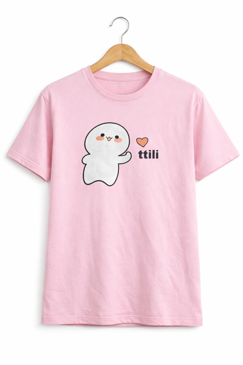 Add a touch of cuteness to your casual wardrobe with this adorable half-sleeve T-shirt. Made from soft and breathable cotton fabric, this T-shirt ensures all-day comfort and a relaxed fit. It features a charming cartoon ghost print with a heart and “ttili” text, giving it a fun, playful, and trendy look. The classic round neck and lightweight fabric make it perfect for daily wear, outings, lounging, or casual styling. Easy to pair with jeans, shorts, or joggers for a cute and comfortable outfit.