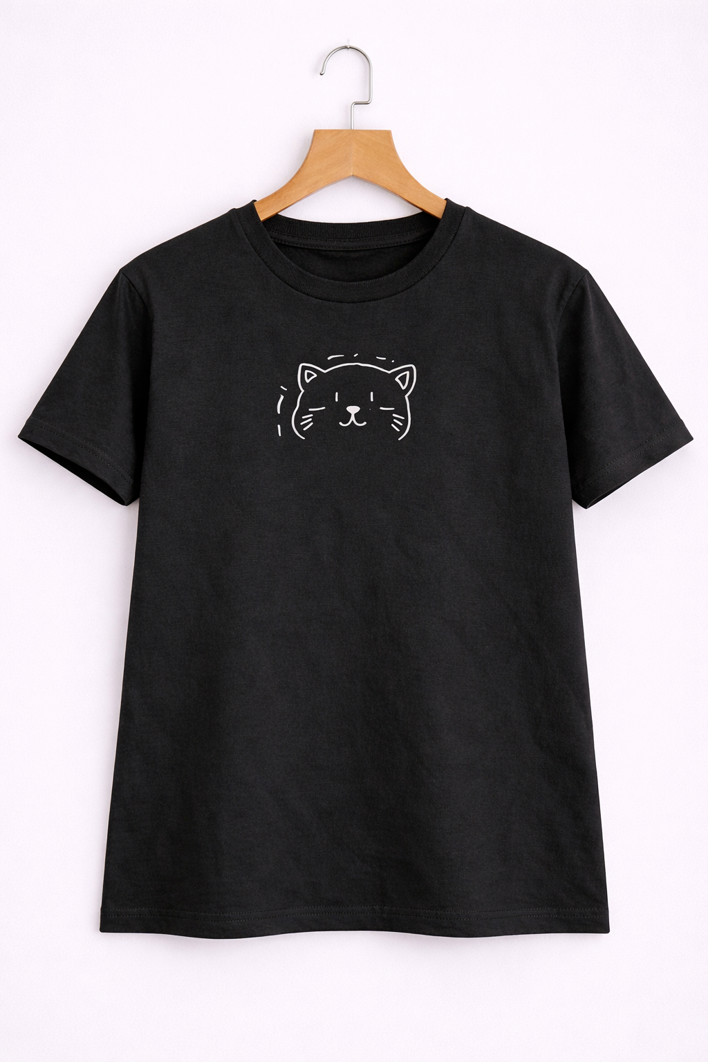 This stylish black half-sleeve T-shirt features a minimal line-art cat face graphic that adds a cute yet modern touch to your casual wardrobe. Made from soft and breathable cotton fabric, it offers all-day comfort and a relaxed fit. The subtle cat design makes it perfect for daily wear, outings with friends, or lounging at home. Easy to pair with jeans, shorts, or joggers, this T-shirt is a must-have for cat lovers and fans of minimal fashion.