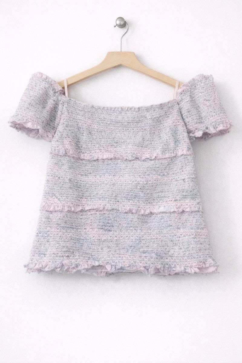 This pastel smocked ruffle top is designed to offer a soft, stylish, and comfortable fit. Made from lightweight and stretchable fabric, it features an off-shoulder neckline with elastic smocking that adapts easily to the body. The delicate ruffle detailing and subtle pastel tones give it a cute and trendy look, making it perfect for casual outings, day events, or everyday wear. Easy to pair with jeans, skirts, or shorts for a fresh and playful outfit.