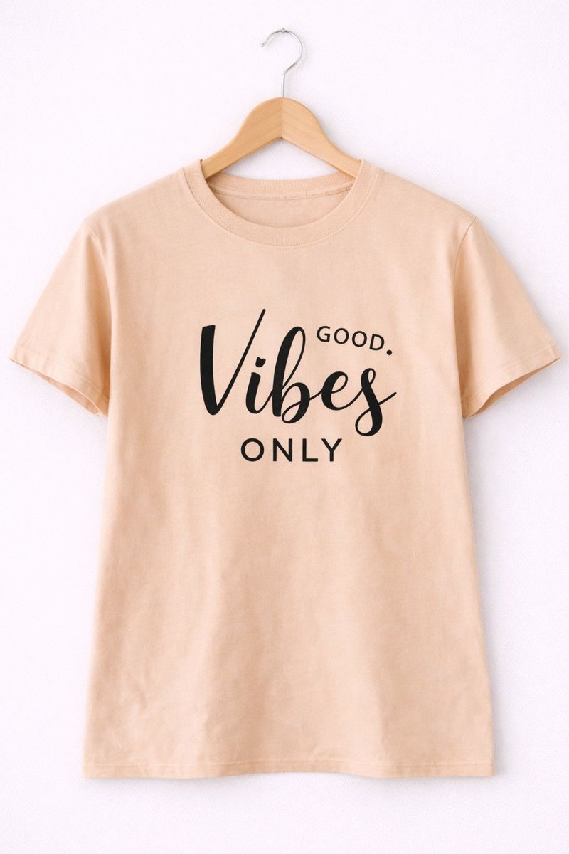 Stay positive and stylish with our Good Vibes Only Printed T-Shirt. Made from soft, breathable fabric, this tee offers all-day comfort with a relaxed fit. The minimal yet uplifting slogan makes it perfect for casual outings, daily wear, or lounging. Easy to pair with jeans, joggers, or shorts for an effortless everyday look.