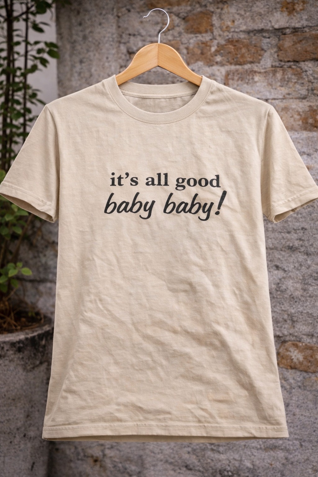 Add a playful vibe to your everyday style with this It’s All Good Baby Baby graphic t-shirt. Made from soft, breathable cotton, this tee features a minimal yet catchy text print that’s perfect for casual outings, lounging, or styling with jeans and shorts. Comfortable to wear all day, it’s a must-have for anyone who loves relaxed fashion with a fun twist.