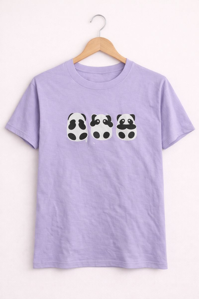 Add a cute and playful touch to your everyday wardrobe with the Lavender Panda Trio Printed T-Shirt. Designed in a soft lavender shade, this t-shirt features three adorable panda illustrations that create a fun and charming look. Made from comfortable, breathable fabric, it ensures all-day ease and relaxed wear. Perfect for casual outings, daily wear, or lounging, this tee pairs effortlessly with jeans, shorts, or joggers.