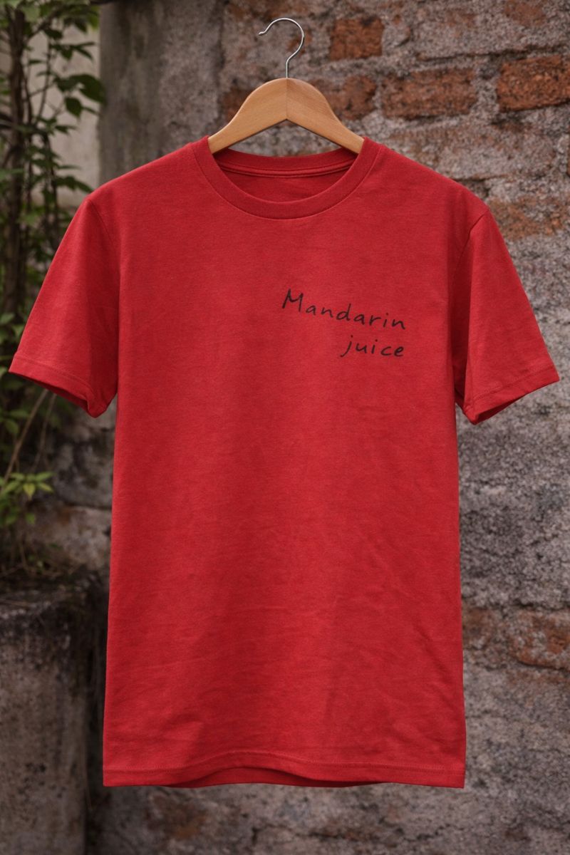Add a bold yet minimal touch to your casual wardrobe with this red T-shirt featuring a stylish “Mandarin Juice” text print. Made from soft, breathable cotton fabric, this T-shirt offers a comfortable fit for everyday wear. The clean typography design gives it a modern, street-style vibe, making it perfect for casual outings, college wear, or daily use. Pair it easily with jeans or trousers for a sharp, effortless look.