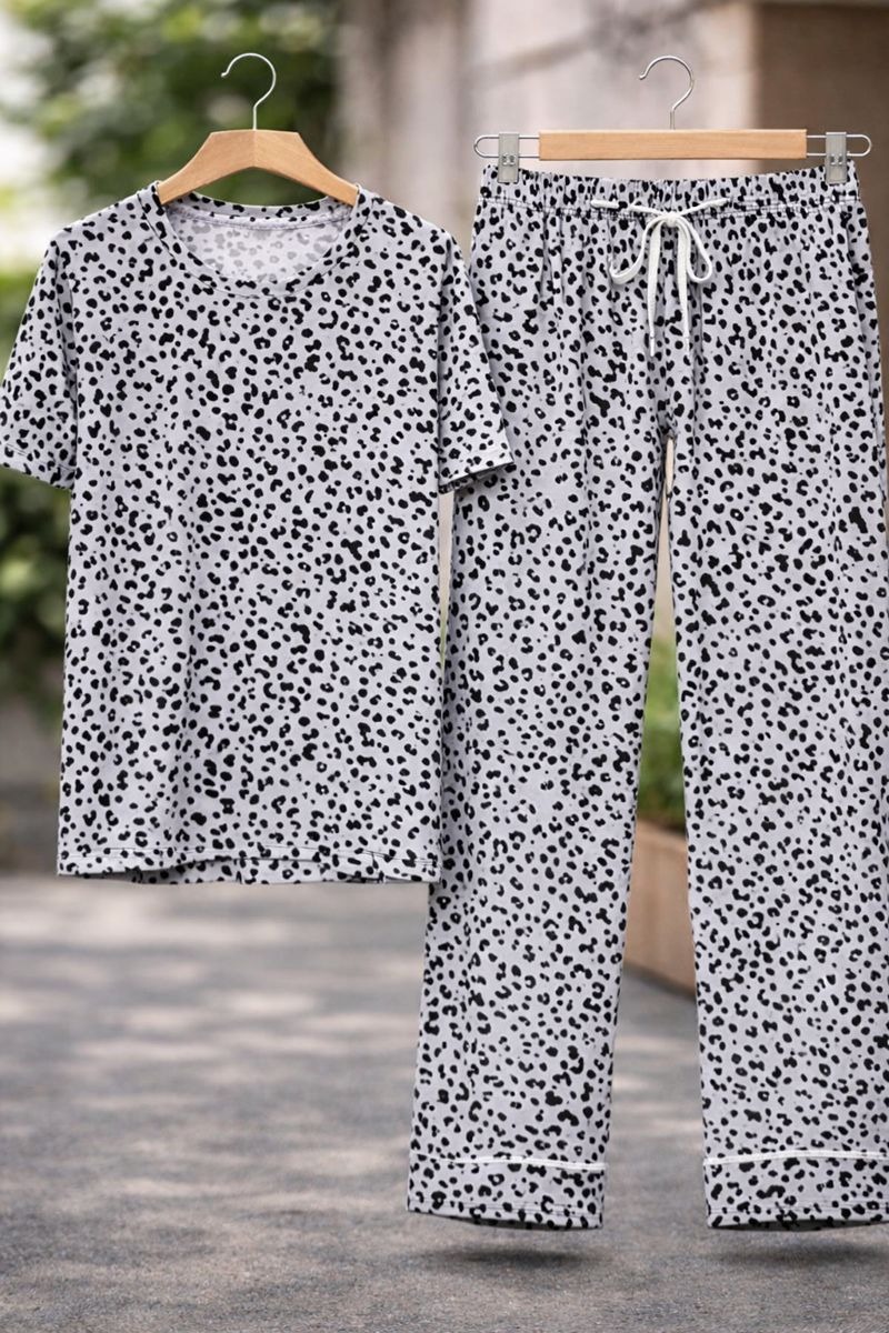 The Monochrome Spot Lounge Co-Ord Set is designed for effortless comfort with a modern edge. Featuring a matching t-shirt and lounge pants in a stylish black and white all-over print, this set is made from soft, breathable fabric for all-day ease. The t-shirt offers a relaxed fit, while the pants come with an elasticated waistband and adjustable drawstring for a comfortable, flexible fit. Perfect for lounging, casual wear, or travel, this co-ord set combines comfort, style, and versatility in one easy outfit.