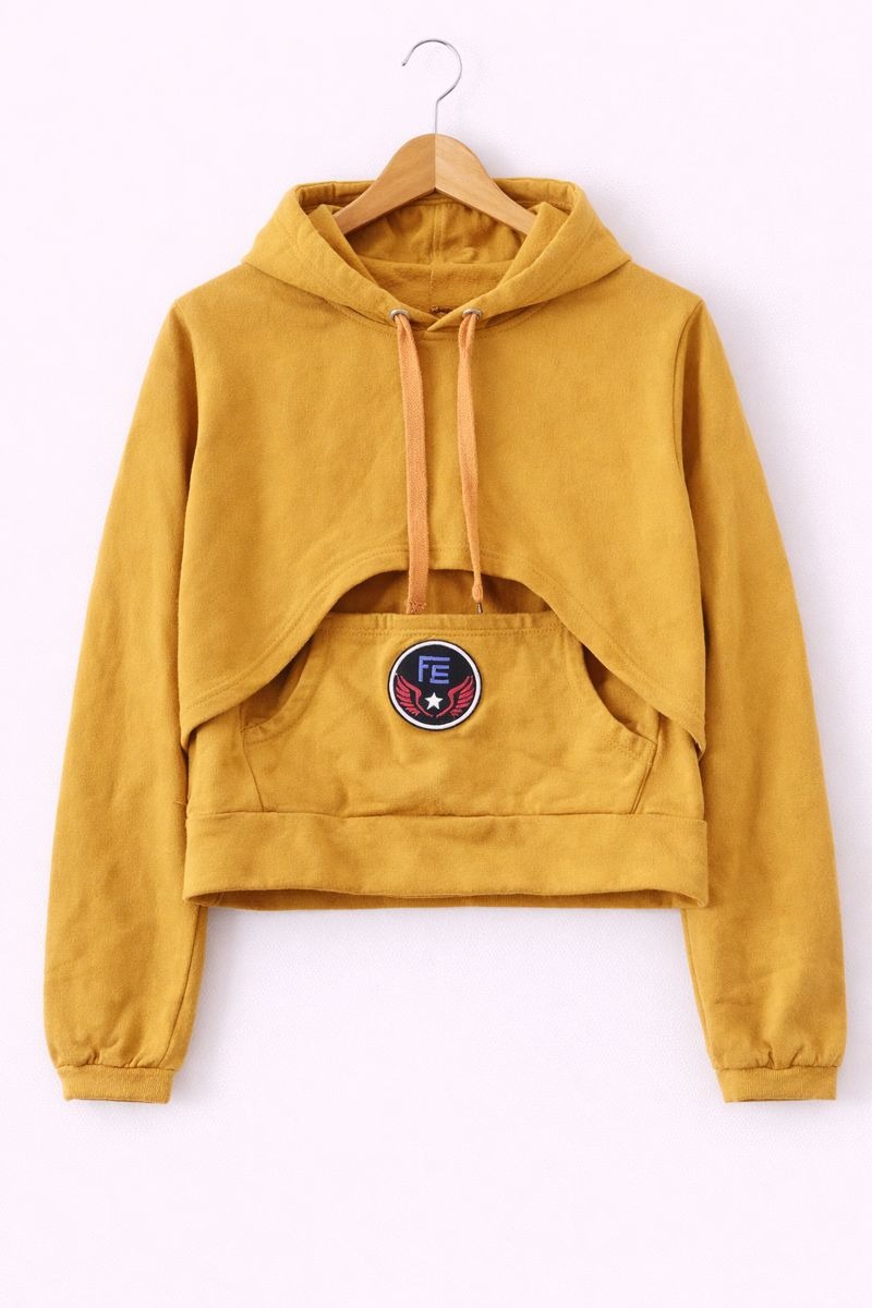 Stand out in style with our Mustard Cut-Out Crop Hoodie. Designed with a unique layered cut-out look, this hoodie features a cozy hood with drawstrings and a front pocket highlighted by a bold patch detail. Made from soft and comfortable fabric, it offers warmth without feeling bulky. The cropped length adds a trendy edge, making it perfect to pair with high-waist jeans, joggers, or skirts for a fashionable casual look.