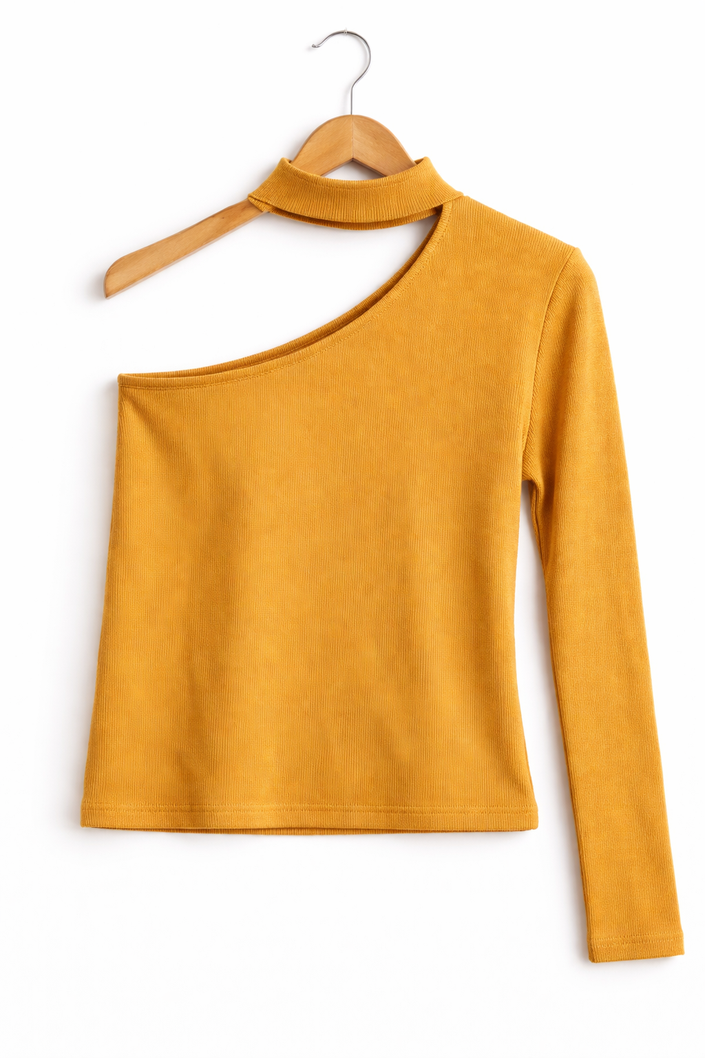 Mustard One-Shoulder Choker Knit Top