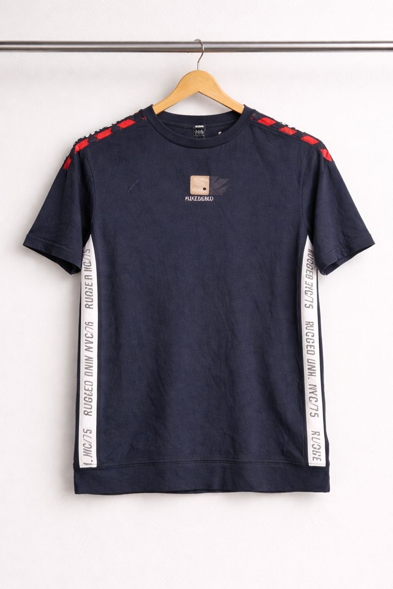 This Navy Blue Side Tape Graphic T-Shirt is designed for a sporty and modern everyday look. Made from soft and breathable fabric, it ensures all-day comfort. The contrast white side panels with text detailing and the patterned shoulder accents add a bold, street-style vibe. Easy to pair with jeans, joggers, or shorts, this T-shirt is perfect for casual outings and daily wear.
