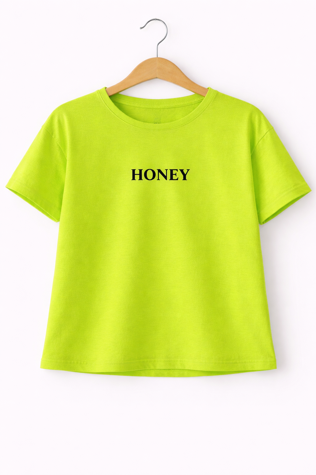 Add a pop of color to your casual wardrobe with this Neon Green “HONEY” Graphic T-Shirt. Designed in a vibrant neon shade, this t-shirt features a bold “HONEY” print on the front for a trendy and playful look. Made from soft and breathable fabric, it offers all-day comfort and a relaxed fit. Perfect for casual outings, daily wear, or street-style looks, this t-shirt pairs easily with jeans, shorts, or skirts for a fresh and stylish outfit.