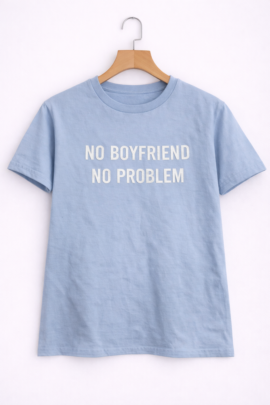“No Boyfriend No Problem” Graphic Half Sleeve T-Shirt