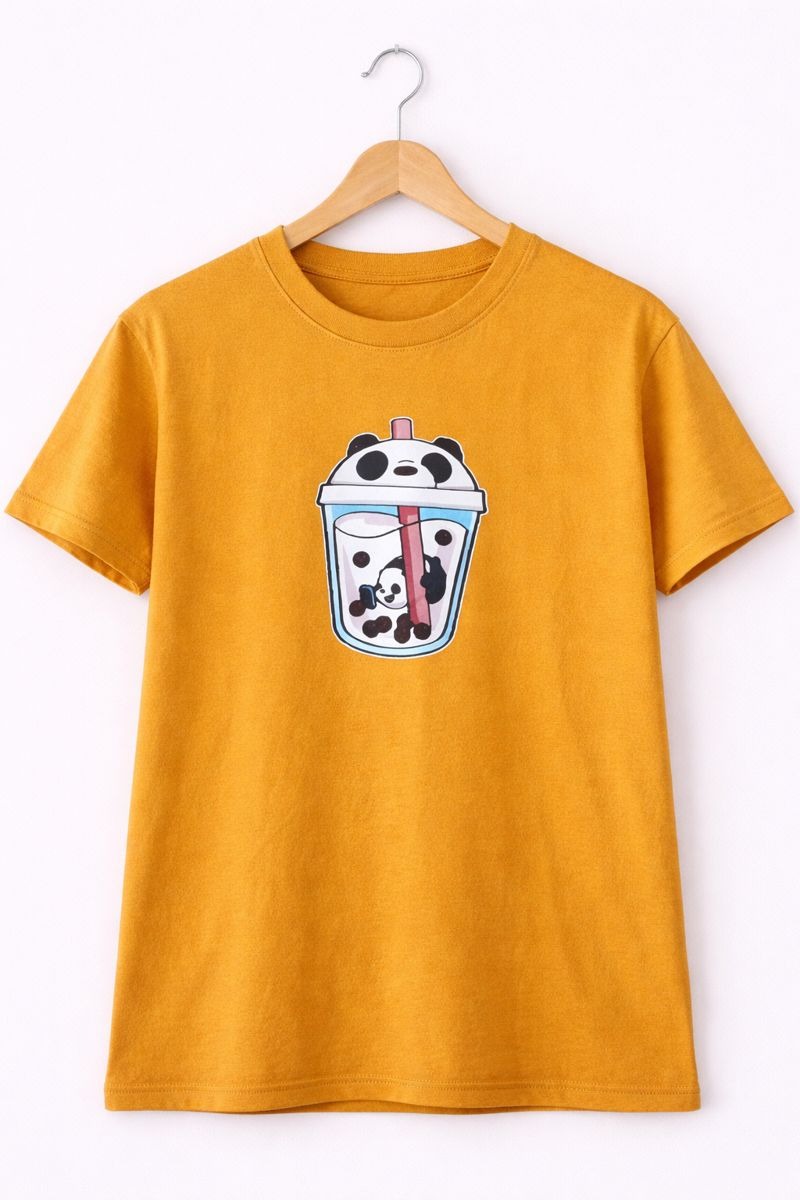 Add a dose of cuteness to your casual wardrobe with this Panda Boba Graphic T-Shirt. Featuring an adorable panda illustration inside a bubble tea cup, this tee brings fun and playful vibes to your everyday look. Made from soft and breathable fabric, it ensures all-day comfort and a relaxed fit. Perfect to style with jeans, shorts, or joggers, this t-shirt is ideal for casual outings, lounging, or panda lovers who enjoy cute and trendy designs.