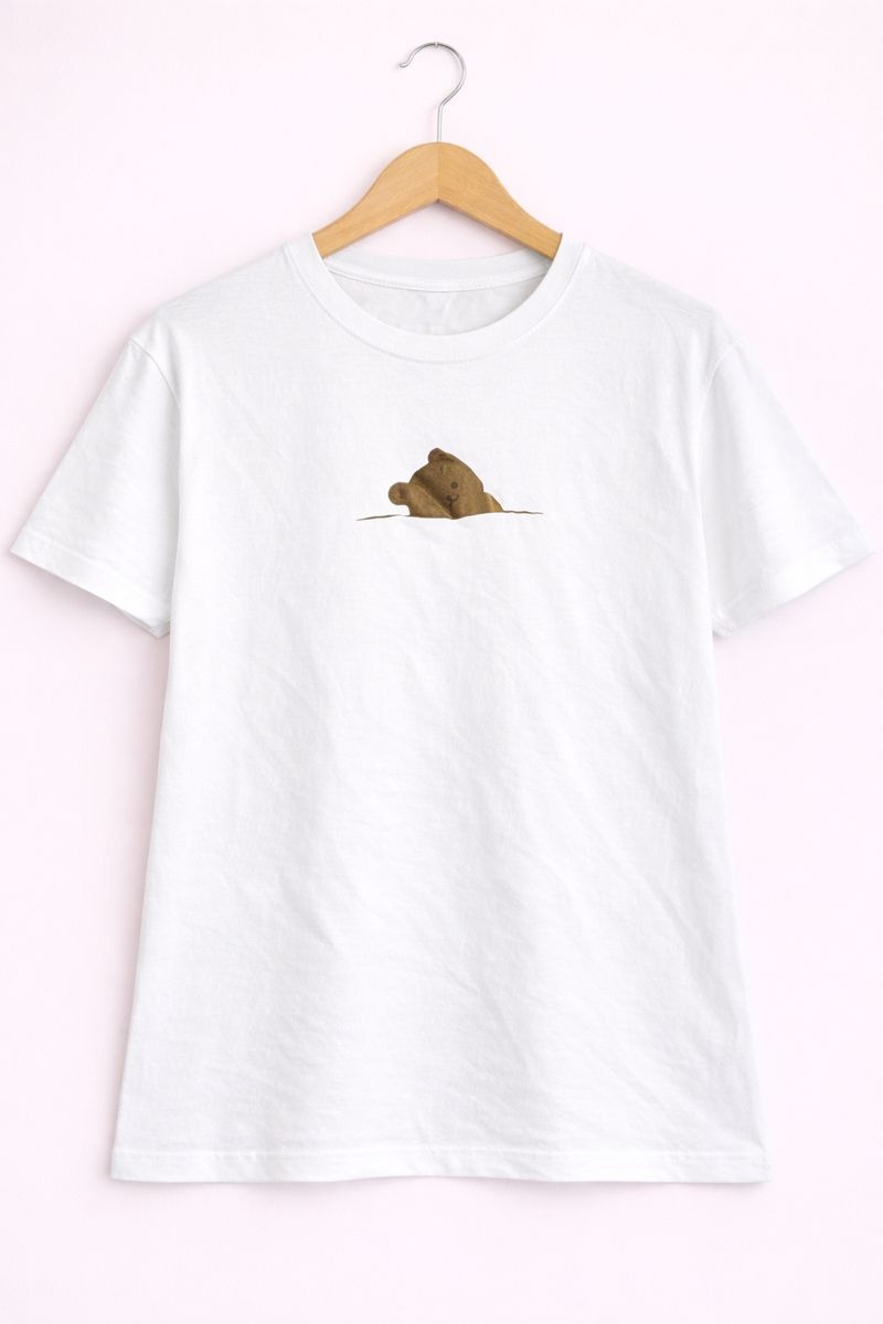 Add a touch of playful charm to your everyday style with our Peek-A-Boo Teddy Tee. Crafted from soft, breathable cotton, this white t-shirt features a cute teddy bear peeking through a minimal tear-style graphic. Designed for comfort and casual wear, it’s perfect for daily styling, lounging, or pairing with jeans for a relaxed look. Lightweight, skin-friendly, and easy to style, this tee is a must-have for cute and minimal fashion lovers.