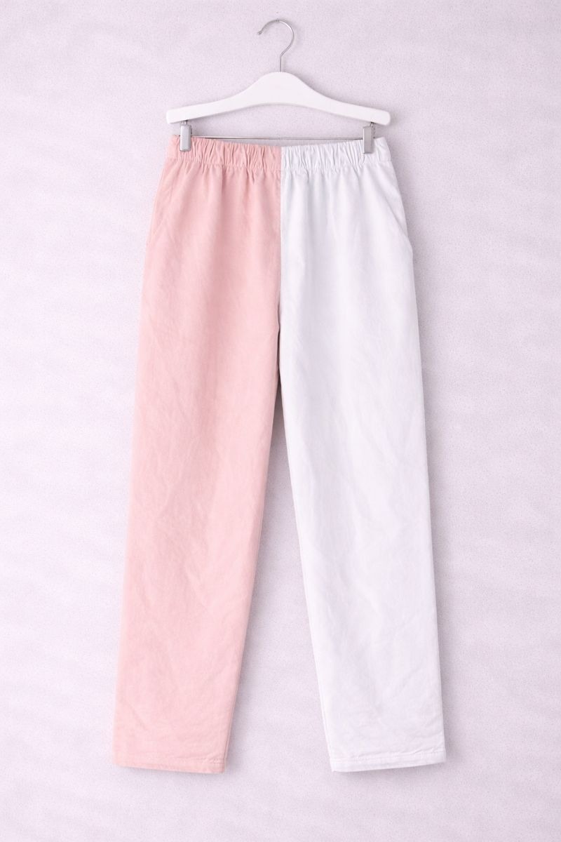 Upgrade your casual wardrobe with these stylish pink and white dual-tone pants. Designed with a clean two-color panel look, they offer a modern and eye-catching style while keeping comfort a priority. Made from soft, breathable fabric, these pants feature a relaxed fit with an elasticated waistband for easy all-day wear. Perfect for lounging, casual outings, or travel, they blend comfort with contemporary fashion.