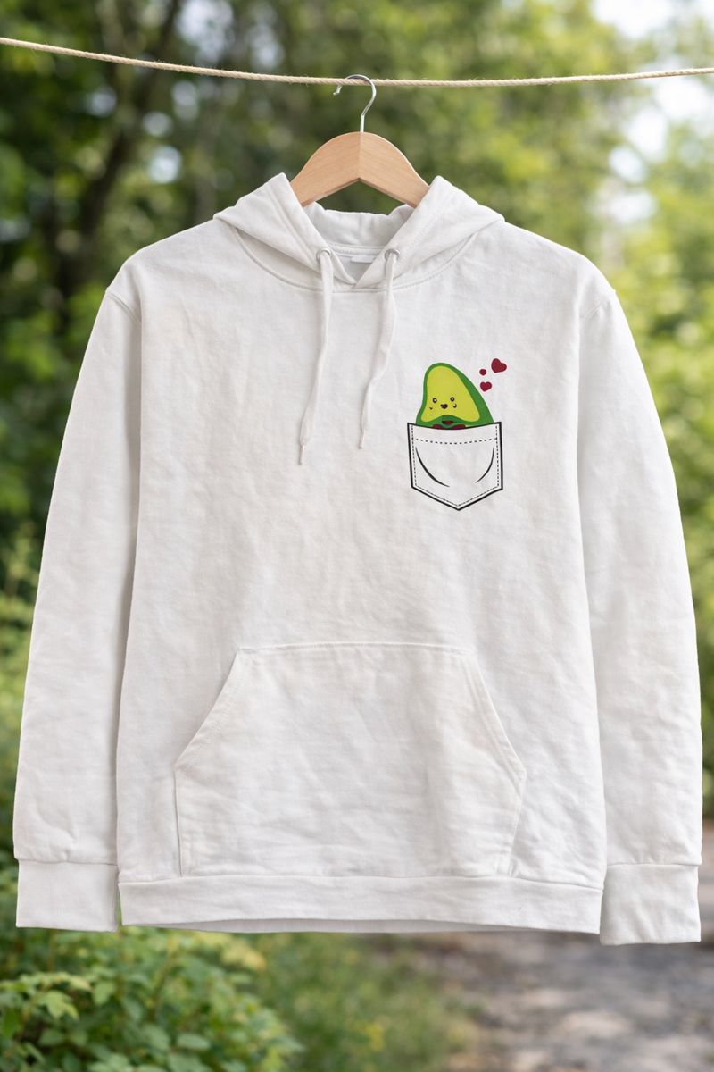 Pocket Avocado Hoodie is made from soft and comfortable fabric, perfect for keeping you warm while looking cute and stylish. Featuring an adorable avocado cartoon peeking out from a pocket design with small heart details, this hoodie adds a fun and playful touch to your casual wardrobe. Ideal for daily wear, lounging, and winter outings.