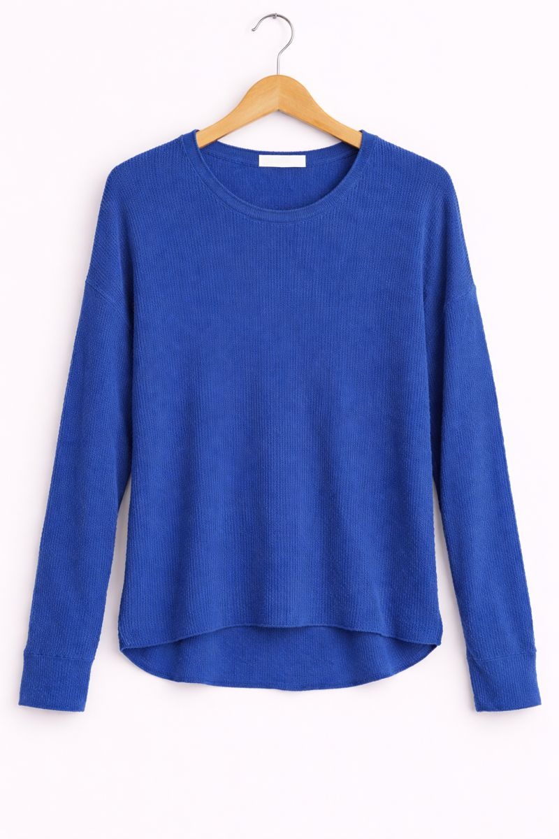 Add effortless style to your everyday wardrobe with this Royal Blue Textured Knit Sweater. Crafted from soft, breathable knit fabric, it offers a comfortable fit with a clean, minimal look. The full sleeves and classic round neckline make it perfect for layering or wearing on its own. Ideal for casual outings, office wear, or relaxed evenings, this sweater pairs easily with jeans, trousers, or skirts for a polished yet easy vibe.