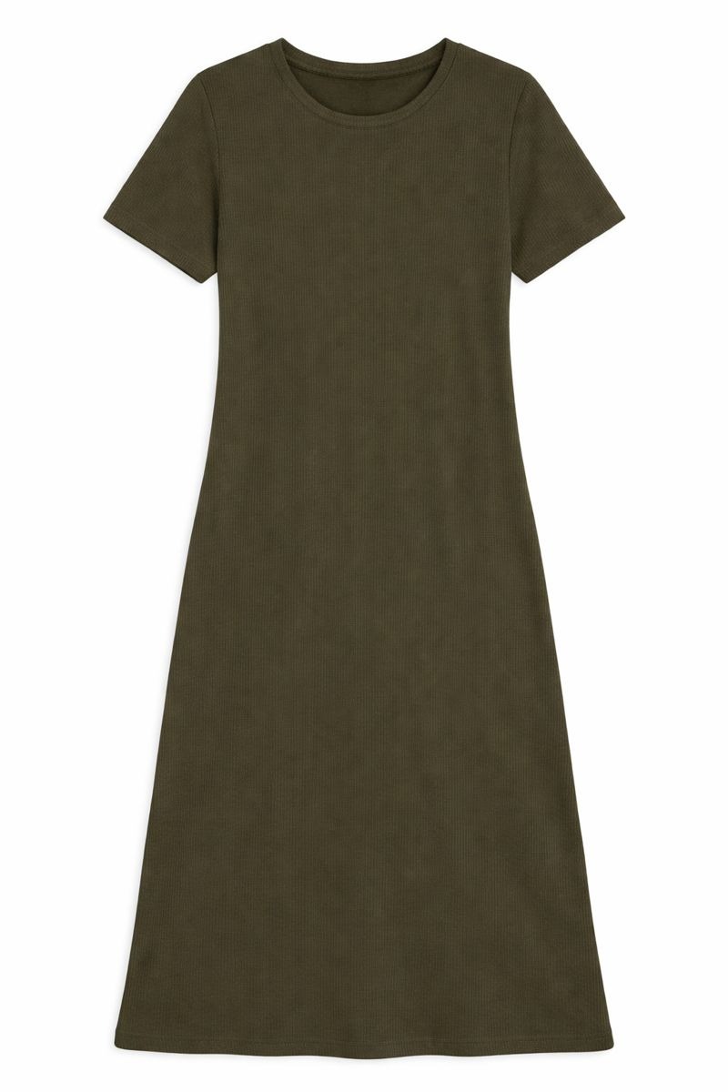 This solid ribbed half sleeve dress is designed for effortless everyday comfort and a clean, minimal style. Crafted from soft and stretchable ribbed fabric, it offers a relaxed yet flattering fit that feels comfortable all day long. The half sleeves and round neckline give it a classic T-shirt dress look, making it perfect for daily wear, casual outings, office-casual styling, or relaxed home wear. Easy to pair with sneakers, flats, or sandals, this dress is a versatile wardrobe essential.