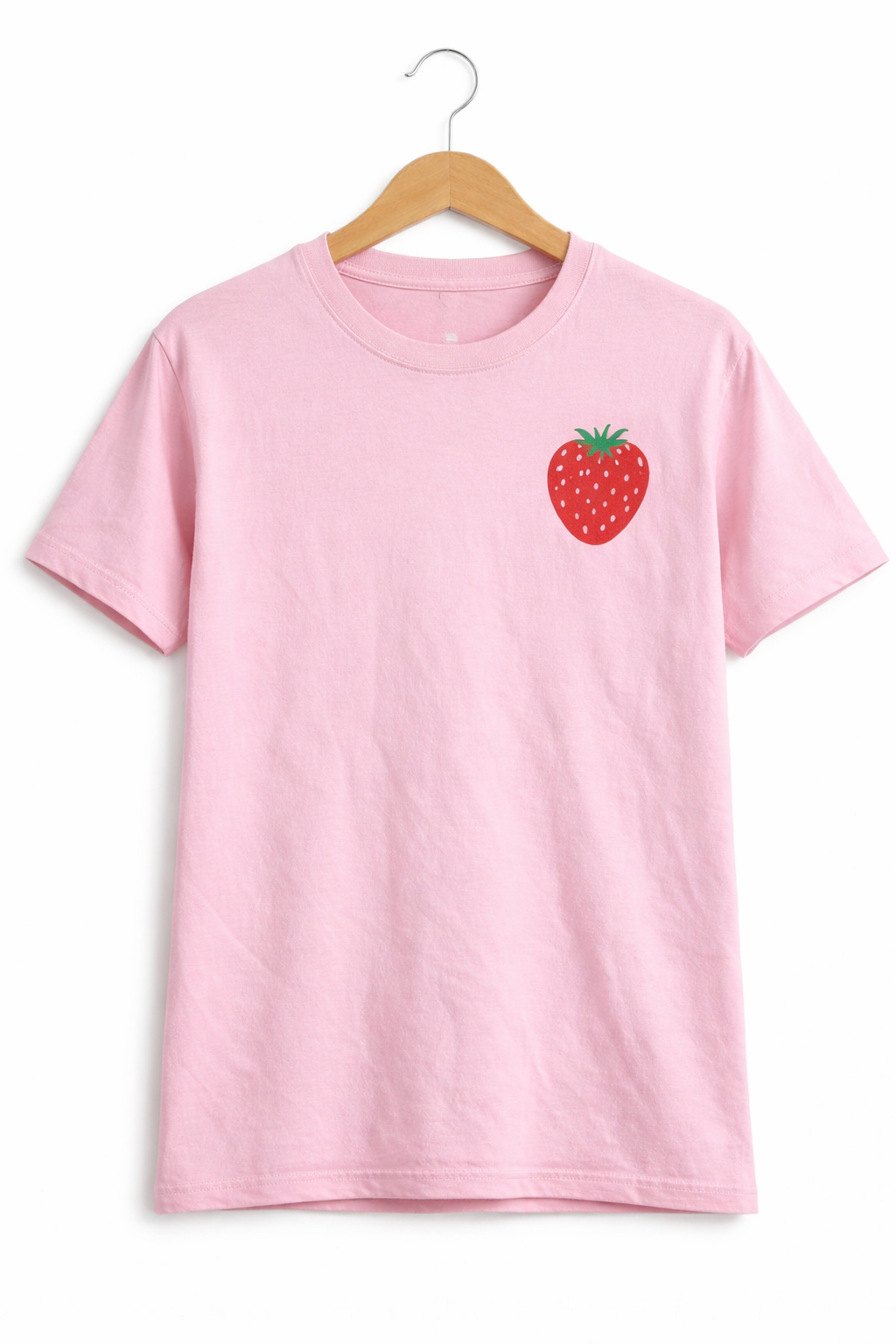 Add a fresh and cute vibe to your casual wardrobe with this strawberry print half-sleeve T-shirt. Made from soft and breathable cotton fabric, this T-shirt offers all-day comfort and a lightweight feel. It features a charming strawberry graphic on the front that gives a sweet, playful, and trendy look. Designed with a classic round neck and regular fit, it is perfect for daily wear, casual outings, lounging, or summer styling. Easy to pair with jeans, shorts, skirts, or joggers for a simple and stylish outfit.
