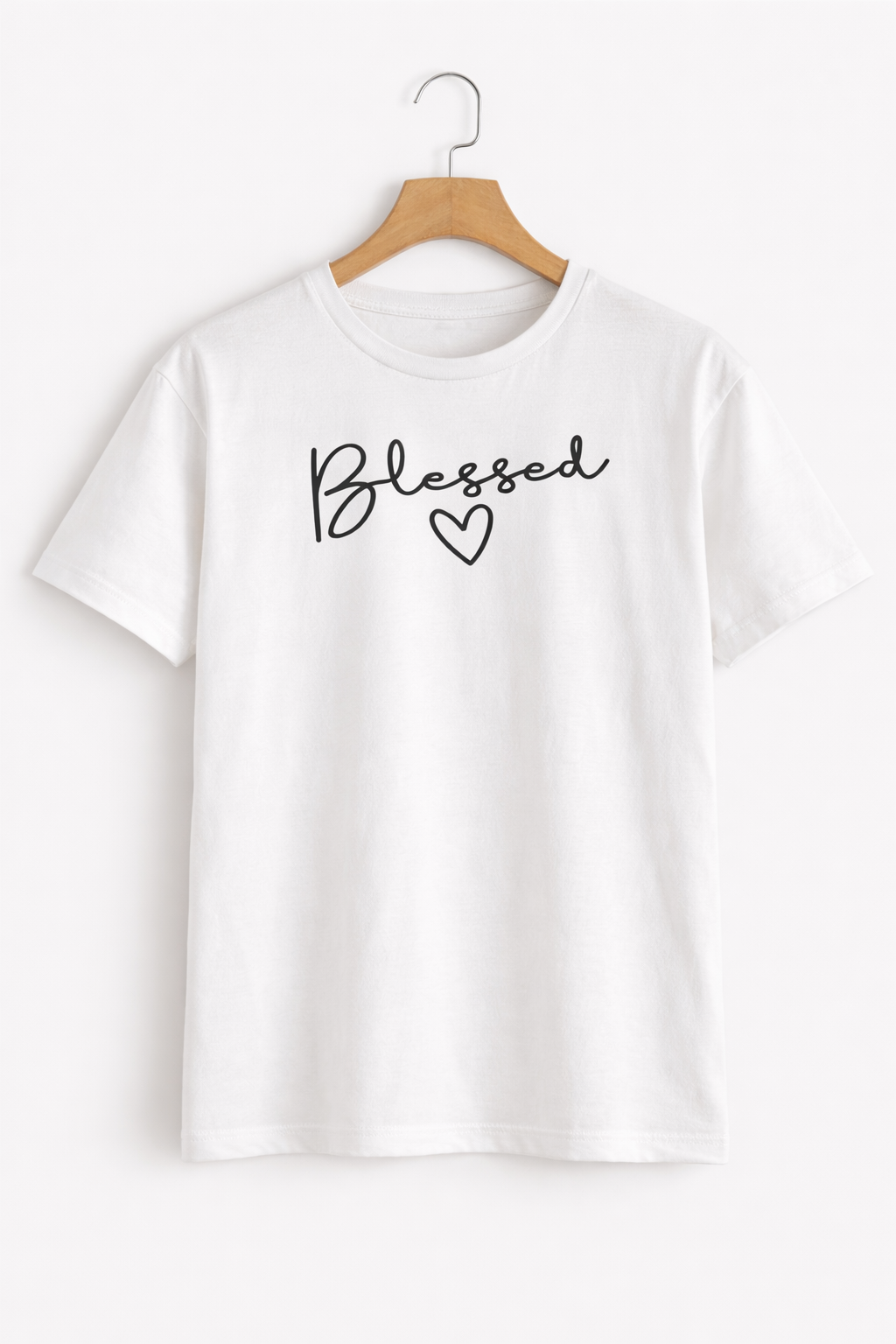Keep your style simple and positive with this men’s white half sleeve T-shirt featuring a “Blessed” text print with a heart design. Crafted from soft and breathable fabric, this T-shirt ensures comfort throughout the day. The classic round neck and regular fit make it perfect for everyday wear. Easy to pair with jeans, trousers, or shorts, this T-shirt is ideal for casual outings, daily wear, and relaxed weekends.