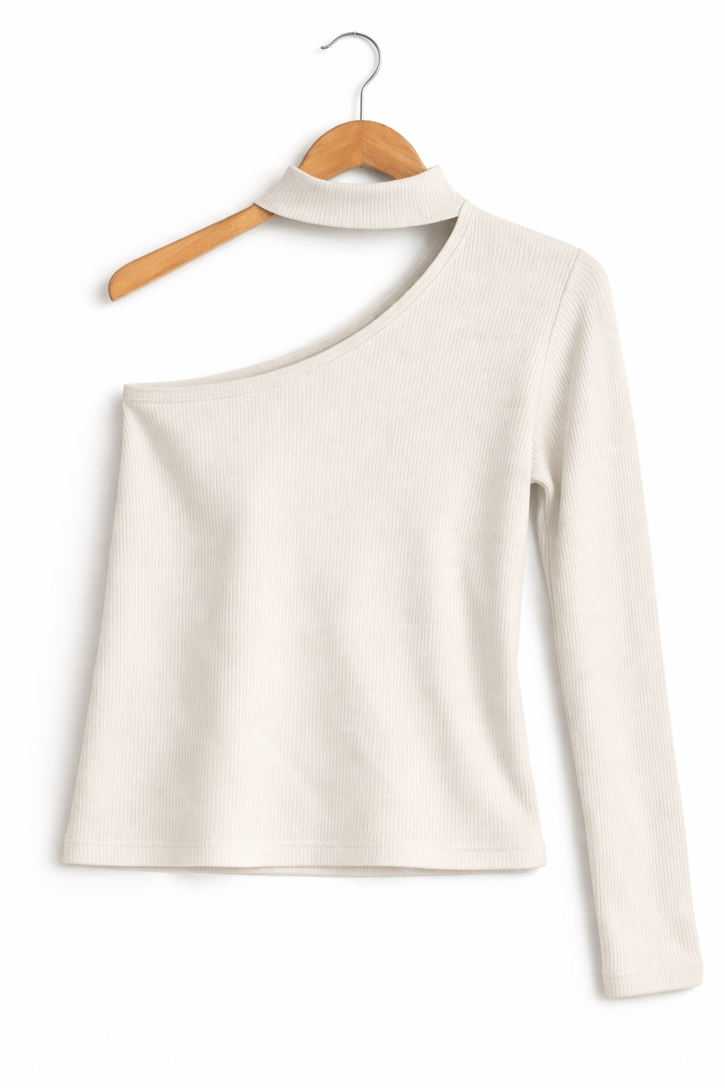 Elevate your fashion game with this stylish one-shoulder ribbed choker top. Designed with a modern asymmetrical neckline and a sleek choker detail, this top adds a bold yet elegant touch to your look. Made from soft, stretchable ribbed fabric, it offers a comfortable and flattering fit for all-day wear. The clean white color makes it easy to style with jeans, skirts, or high-waist trousers, making it perfect for casual outings, parties, or evening wear.