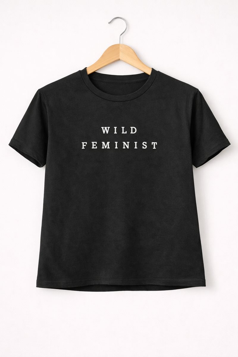 Make a bold and confident statement with the Wild Feminist Graphic Tee. Designed in classic black, this t-shirt features the powerful text “WILD FEMINIST” in a clean, minimal font. Crafted from soft, breathable fabric, it offers a comfortable fit for all-day wear. Perfect for casual outings, everyday styling, or making your voice heard through fashion, this tee pairs effortlessly with jeans, trousers, or joggers for a strong yet effortless look.