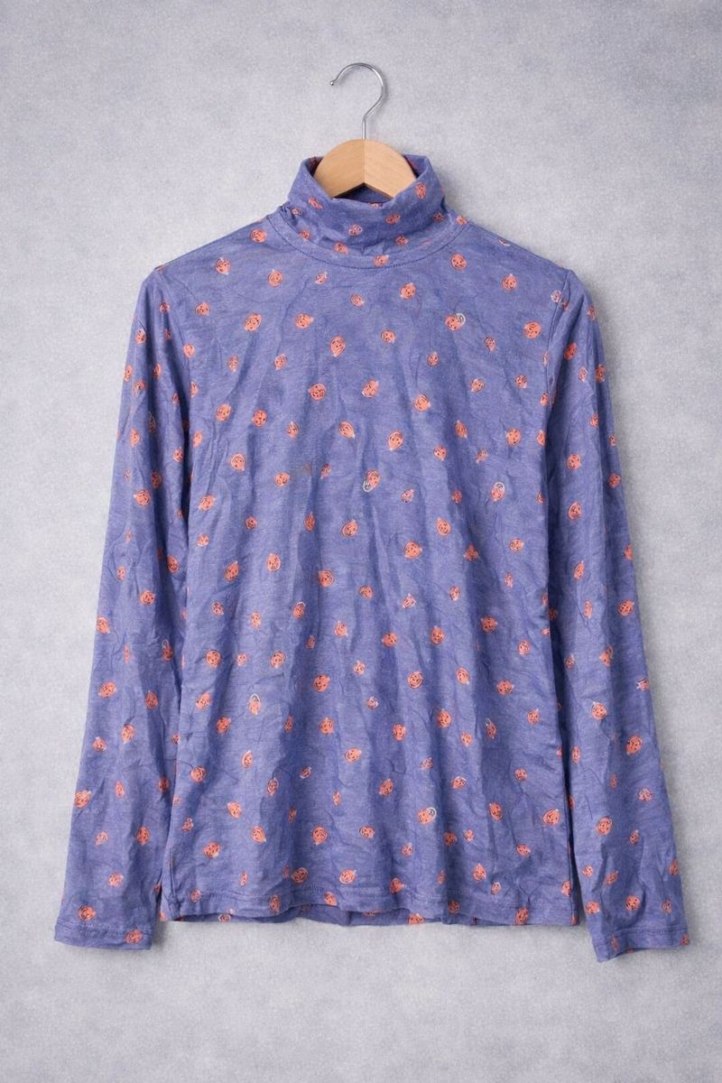 Add comfort and style to your everyday wardrobe with this printed high-neck full sleeve top. Made from soft and breathable fabric, it feels gentle on the skin and offers all-day comfort. The high-neck design gives a cozy fit, while the full sleeves provide extra coverage for cooler days. Featuring a trendy all-over print, this top is easy to style with jeans, trousers, or lounge pants—perfect for daily wear, casual outings, or relaxed home wear.